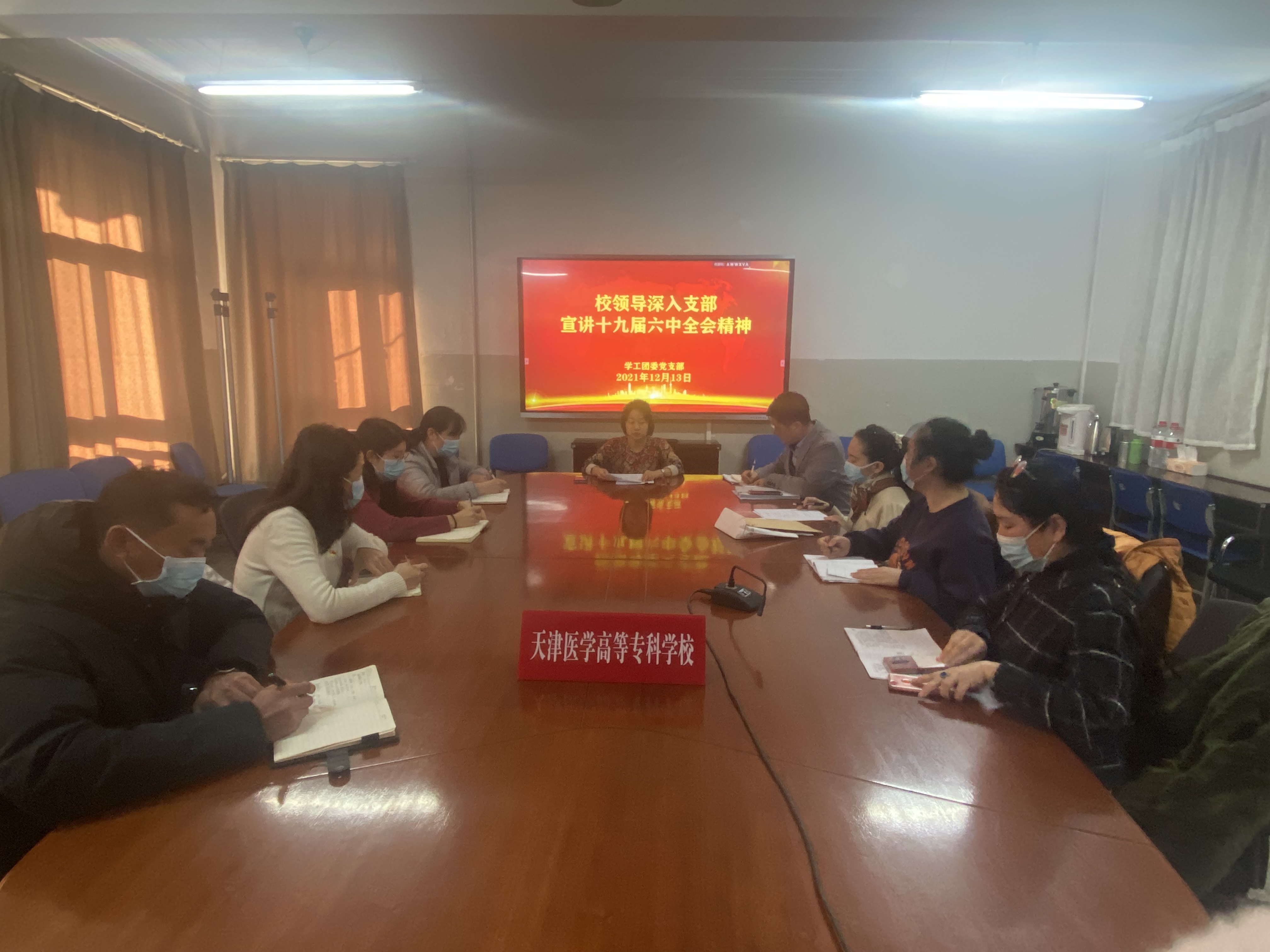 为做好党的十九届六中全会精神学习宣传工作,切实把党员干部师生思想和行动统一到全会精神上来,根据市教育两委、市卫健委党委通知精神,按照学校党委的统一部署,校党委副书记、副校长左红于2021年12月13日下午深入联系点——学工团委党支部,为支部全体党员宣讲党的十九届六中全会精神,为支部党员上了一堂理论联系实际的党课。左书记从七个部分、两个特点、一个突出亮点和一个重大政治论断等方面,带领大家认真学习了《中共...