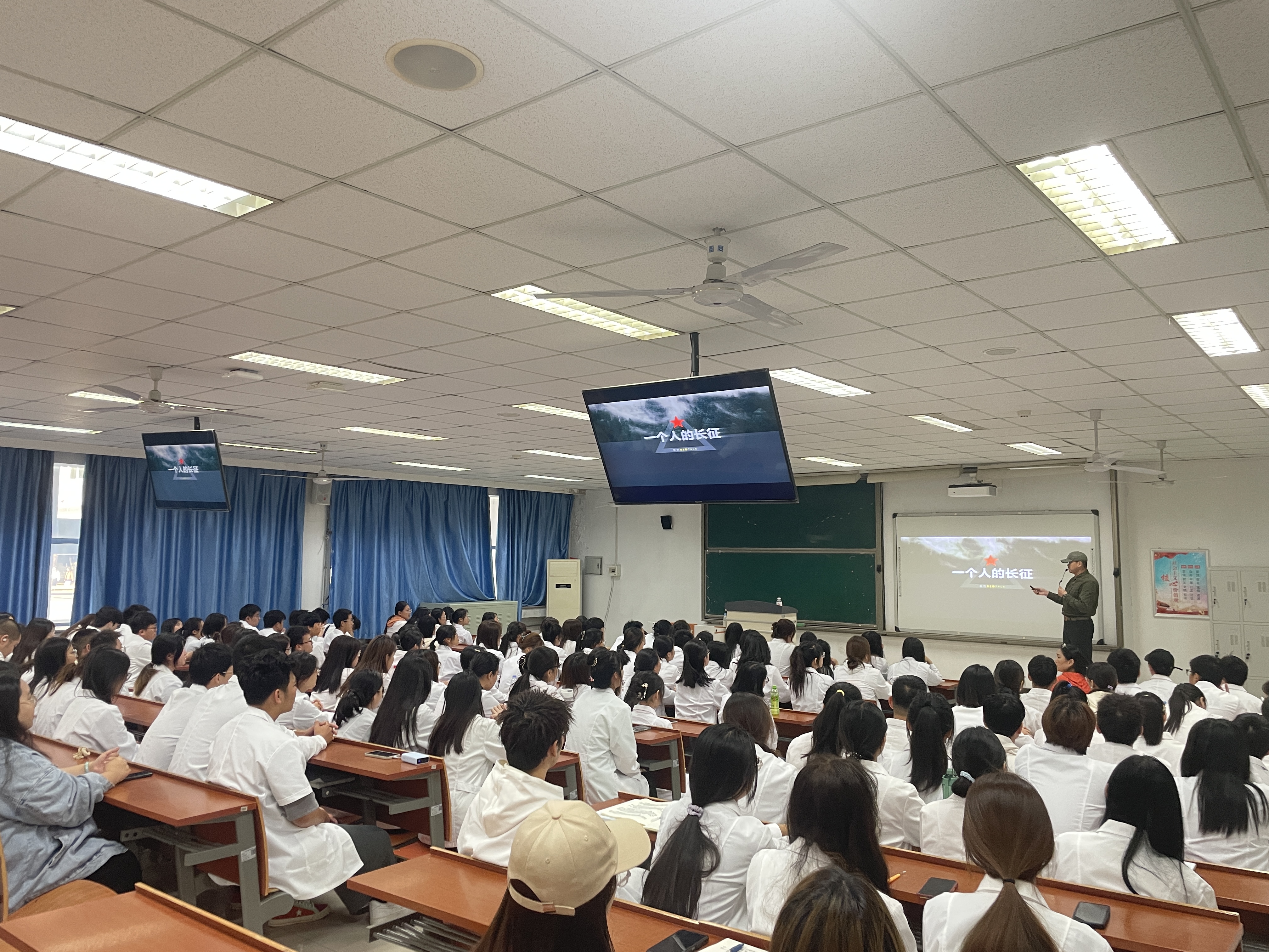10月24日上午,“一个人的长征·百场忠诚教育思政大课”校园巡讲报告会在我校举行。天津滨海汽车工程职业学院思政课教师、著名摄影家、长征纪录片导演左力为我校师生作了关于长征故事与长征精神的生动报告《一个人的长征》。我校专职辅导员和思政课教师代表、各院系学生代表参加报告会。报告会由医学护理学院医学口腔学工支部熊湘萍书记主持。
