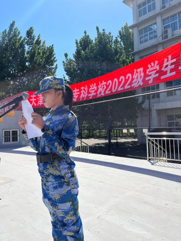 医学系康复治疗技术专业2252班段一凡作为新生代表发言,她表示要一切行动听指挥,严格训练,服从命令,认真完成规定的每一项军训任务;向教官学习,学习他们的好思想、好作风、好品德,并在今后的学习、生活中发扬光大;要在军训中拼搏向上,积极进取,战胜困难,战胜自我,培养吃苦耐劳的优秀品质。