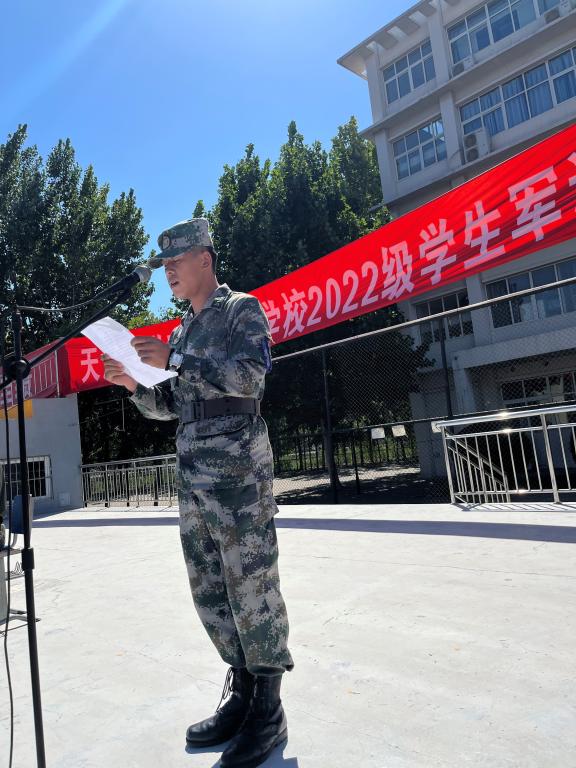 校党委学生工作部部长、团委书记、武装部副部长张鑫在动员讲话中,代表学校向承担此次军训任务的全体民兵教官表示欢迎和感谢,希望同学们不断增强国防意识,提升军事技能,继承发扬人民军队优良传统和作风,并对学生们提出要求:提高认识,端正态度,要以饱满的热情全身心地投入到军训中;团结奋斗,步调一致,要始终牢记集体荣誉高于一切;虚心学习、刻苦训练,要尊重教官,服从命令、听从指挥,高标准、高质量地完成所有训练科目。