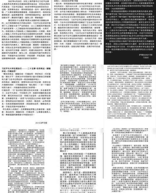 党委学生工作部组织全校专职辅导员认真学习习近平总书记重要讲话,充分发挥“学习强国”APP的作用,将重要内容在微信群中推送转发,辅导员老师在线上进行学习;校团委组织全体团学干部重点学习了讲话的主要内容,很多学生干部在线上畅谈学习体会。习近平总书记的重要讲话引发师生们的热议,大家纷纷表示要牢记教诲,不负青春韶华,为实现中华民族伟大复兴而踔厉奋发、勇毅前行。