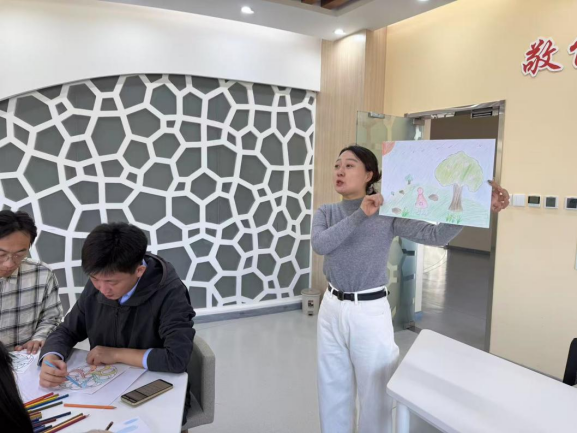 为提升辅导员心理健康教育专业能力,创新心理辅导工作方法,11月21日,党委学工部大学生心理健康教育指导中心特邀天津美术学院心理中心郑洁老师,为全体专职辅导员开展绘画心理团辅技术体验式培训。本次培训以“实践体验+技能提升”为核心,通过“雨中人”、“曼陀罗”两项经典绘画心理活动,让辅导员在沉浸式体验中掌握绘画心理分析与辅导的实用技巧。郑老师结合高校学生心理健康工作特点,简要阐述了绘画心理团辅技术的理论基础与应用价值,强调绘画作为非语言表达工具,能有效打破沟通壁垒,帮助辅导员更精准捕捉学生心理状态,提升心理辅导的针对性与实效性。