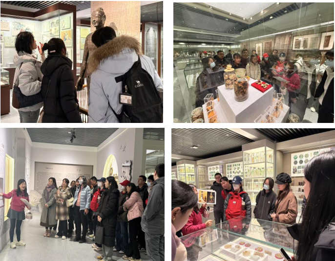 上午,团队抵达位于北京市朝阳区的北京中医药大学中医药博物馆进行参观学习,师生们透过丰富的典籍、药材标本与历史器具,系统探寻了中医药学的发展脉络,同学们认真聆听博物馆工作人员讲解,深刻感悟了“大医精诚”的文化内核与生命智慧,增强了作为卫生健康事业接班人的使命感、责任感。
