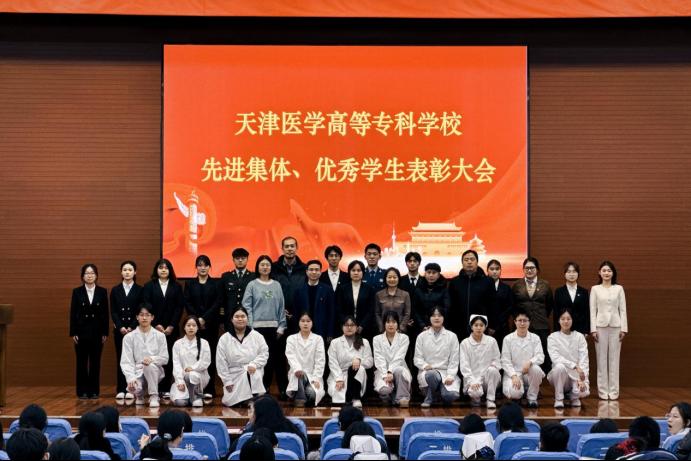 先进集体和优秀学生代表——药学与生物技术学院医学检验技术2348班李萌、2025年“十佳大学生”代表——李丽华、天津市优秀学生干部获得者——毛艺瑾、天津市大学生年度人物提名奖获得者——田钧宇等四名同学分别进行了事迹分享。在场师生被发言同学的先进事迹深深打动,会场掌声不断。