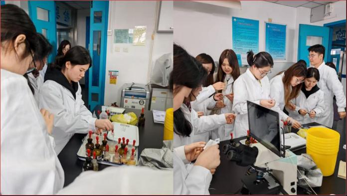 与此同时,各类实验实训课程顺利启动、有序开展。实验室里,精密的仪器静待学子探索,瓶瓶罐罐的试剂承载着医学生们的奥秘。同学们精神饱满、认真投入,在老师的指导下规范开展实验操作,课堂学习氛围浓厚。