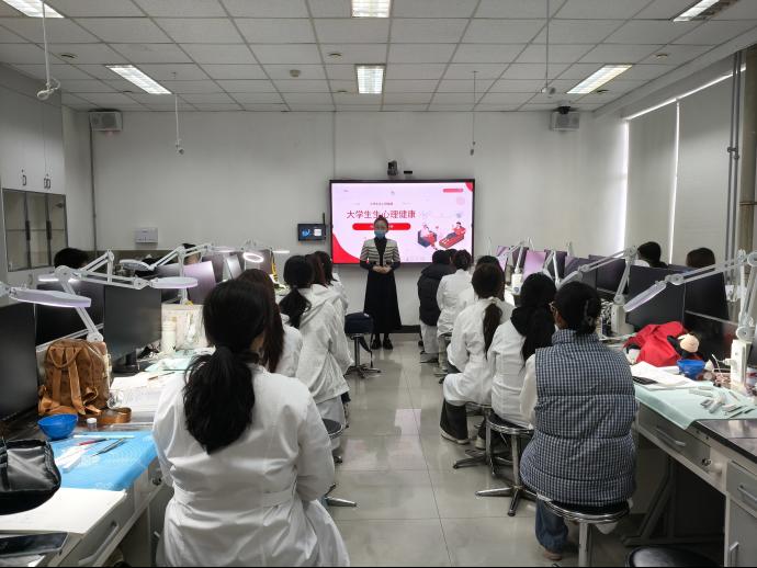 其次,专业科普,提升认知:辅导员们结合口腔医学系专业特点,利用PPT讲解、案例分析、视频播放等形式,向学生普及春季常见心理问题的识别与应对方法,讲解压力管理、情绪调节的实用技巧,引导学生科学认识心理健康,破除对心理咨询的偏见。