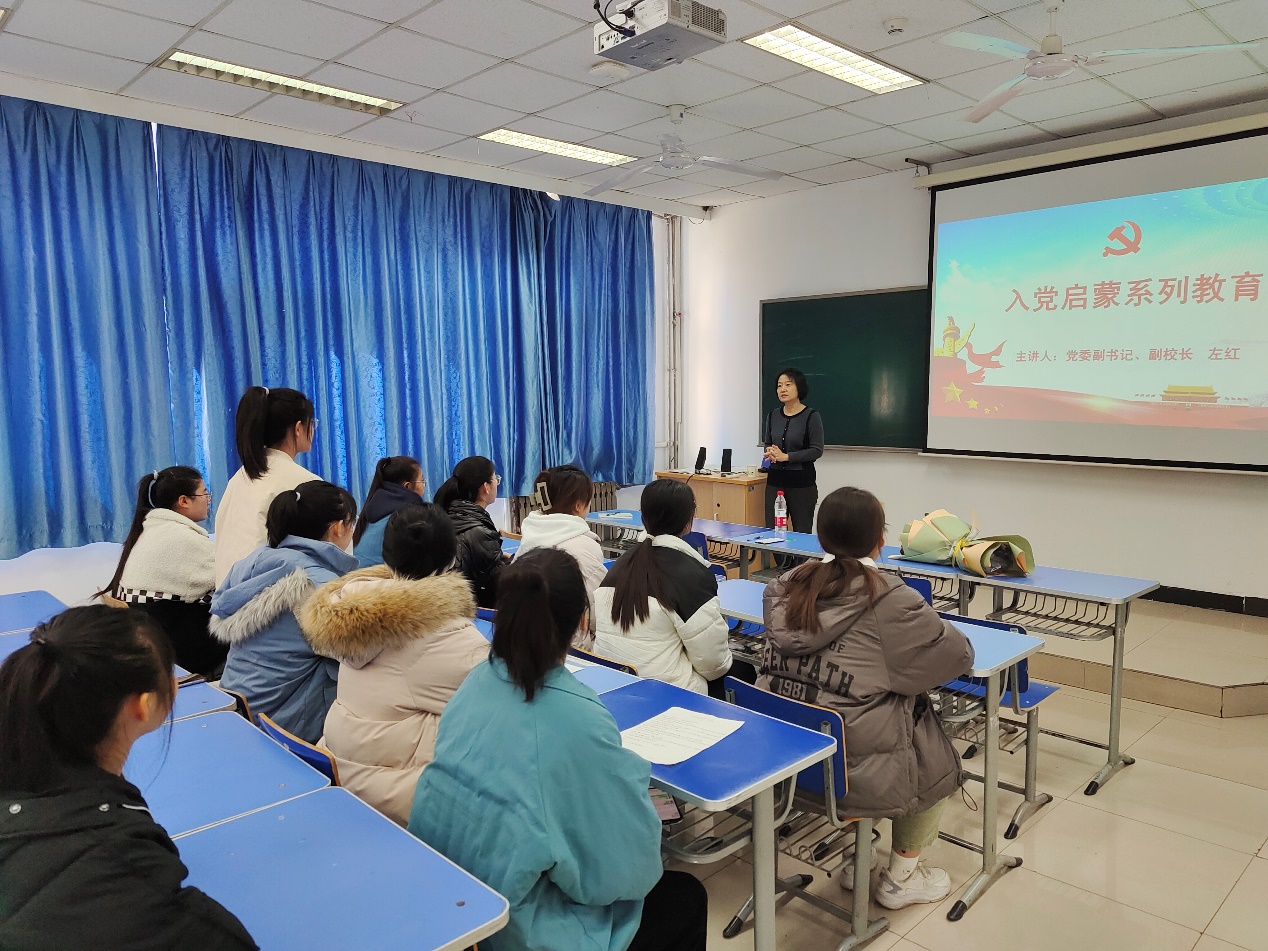 12月1日上午,校党委副书记、副校长左红深入医学护理学院,参加口腔医学技术2101班“我为什么选择加入中国共产党”主题班会,为同学们讲党课、开展入党启蒙系列教育。