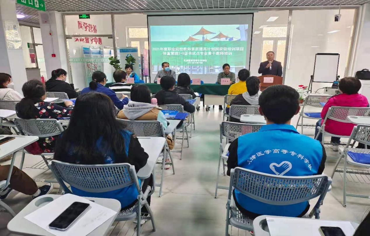 为贯彻落实《国务院关于引发国家职业教育改革实施方案的通知》、《教育部财政部关于实施职业院校教师素质提高计划的意见》文件精神,提高职业院校教师教学水平和教学能力,发挥“双高”院校示范引领作用,促进各兄弟院校的共同发展,加强兄弟院校间经验交流,天津医学高等专科学校承办“2021年度天津市职业院校教师素质提高计划国家级培训l+X证书试点教师培训项目”,在教务处整体统筹和指导下,卫生健康管理学院积极推进项目实施,于2021年10月18日至11月12日圆满完成4周共计160学时培训任务,共有来自天津市中、高职院校的15名教师参加了此次培训。