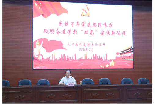 为进一步学习贯彻落实习近平总书记“七一”重要讲话精神,再次掀起党史学习教育高潮,7月15日下午,校党委陈振锋书记讲授主题为“感悟百年党史思想伟力砥砺奋进学校‘双高’建设新征程”的党史学习教育专题党课,全校教职工参加。