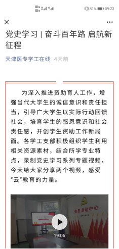 获得国家奖学金和天津市人民政府奖学金的任玉莹、王天雨、秦厚国、李清娴、俞静、高玉龙等同学作为主要组织者、讲解者,坚持以学习习近平新时代中国特色社会主义思想为主线,把握党史学习教育重点,充分利用相关资源素材,参与录制并分享了党史学习系列专题云课堂,积极向我校“学工在线”微信公众号平台投稿。
