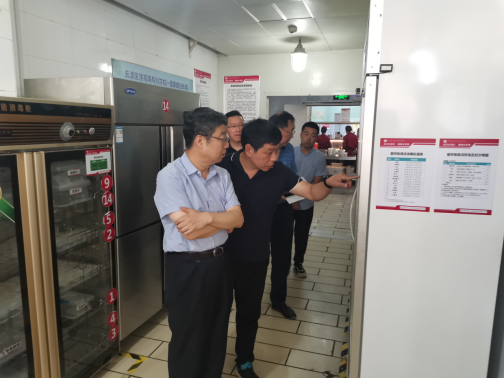 2021年6月14日市卫健委安全生产电视电话会议后,郝建军副校长带领安全保卫处、后勤管理处、国有资产处部门人员前往学校危化品库房、学生食堂、变电室,实地检查危化品存储使用管理、燃气设施设备运行维护、用电安全规程落实等情况。