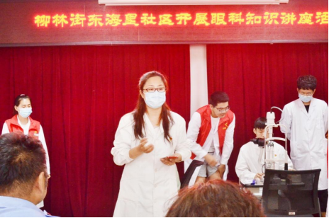 6月18日,医疗支部党支部10余名教师、辅导员、学生组成志愿服务队来到中山门街道社区服务中心为社区居民进行眼健康筛查和健康宣讲,并为社区居民赠送夏日家庭常备药品。
