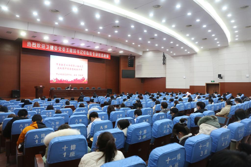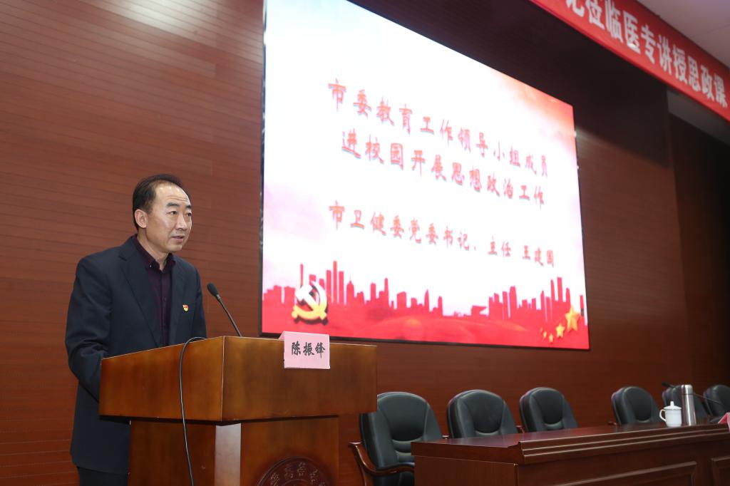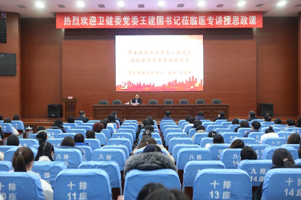 为贯彻落实习近平总书记关于思政工作重要讲话精神和全国高校思政工作会议精神,落实立德树人根本任务,按照市教委下发的《关于领导干部进校园开展思想政治工作的通知》要求,市卫健委党委书记、主任王建国同志于12月23日到我校进行思政工作调研并走上讲台为师生们讲授思政课。