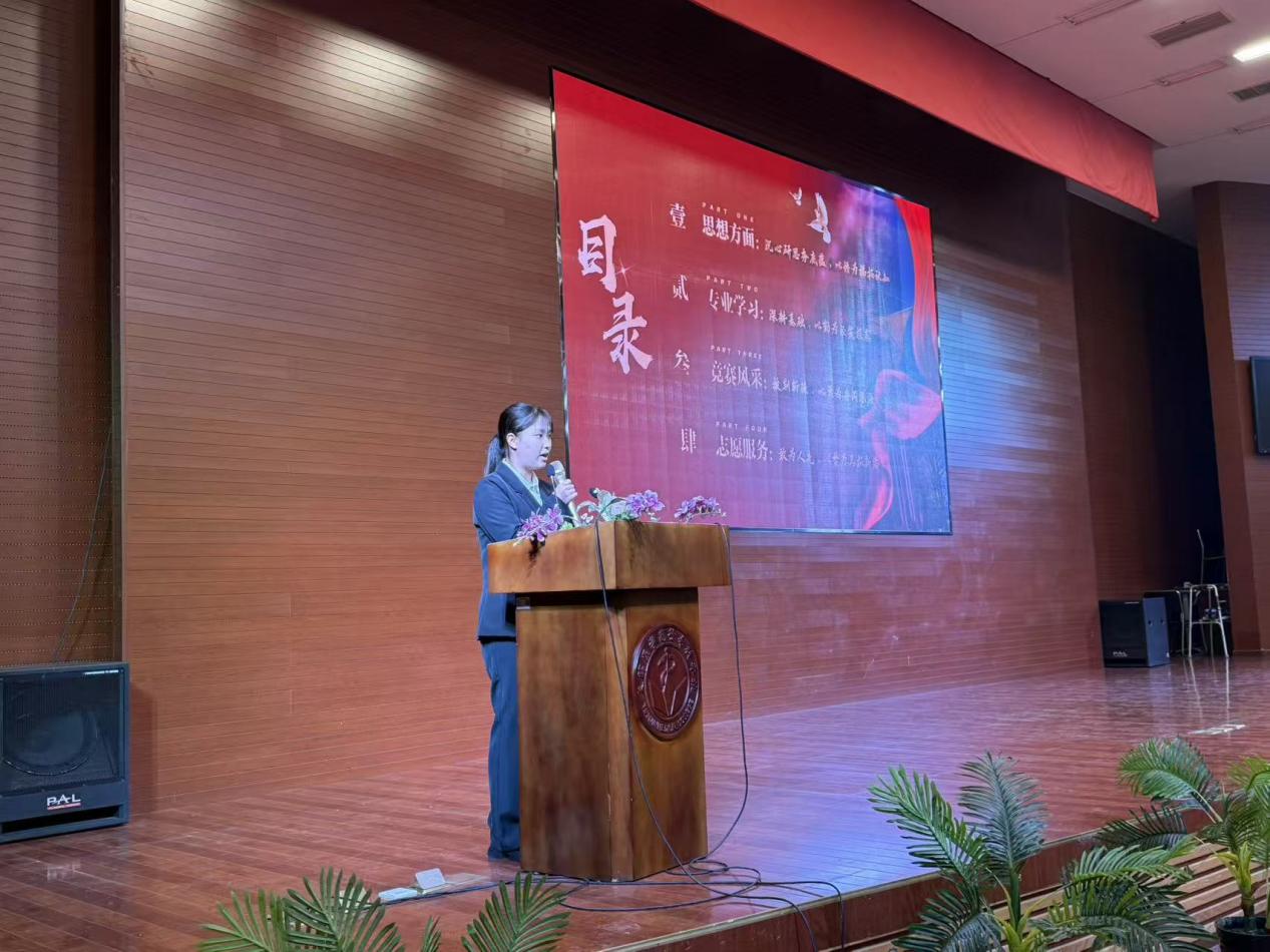 护理党支部书记商其杰在开场致辞中,勉励学子秉持严谨治学态度,将专业学习与社会责任相结合,在深耕专业中厚植家国情怀,明确学风建设的实践方向。随后,国家奖学金获得者陈威帆、张艺凡、杨洋洋三位同学,以“医学生的成长答卷”为主线,分享了从理论课堂深耕、实训实践锤炼到临床见习历练的成长历程。他们用真挚的话语讲述面对患者时的初心坚守与能力蜕变,传递出对医学专业的敬畏与理想追求,让“勤学善思”的学风内涵变得具象可感,引发全场强烈共鸣。