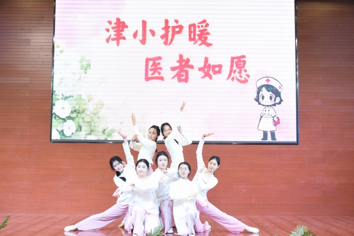文艺展演环节精彩纷呈:舞蹈《如愿》以轻盈舞姿传递医学生救死扶伤的理想与“天下无疾”的期许;歌曲联唱《紫荆花》《辞家》等抒发学子对家国的眷恋与奔赴医学理想的决心;手势舞《你的答案》活力满满,展现医学生不畏挑战的求索精神;话剧《津门护暖微光成炬》取材真实临床故事,通过日常照护、紧急救援的生动演绎,刻画护理工作者的专业与温情,彰显医学人文精神。手势舞《少年中国说》将氛围推向高潮,成为全体医学生传承学风、担当时代责任的青春宣誓。