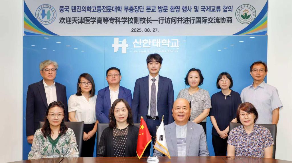 在韩国信韩大学,出访团与信韩大学国际处处长赵顕珪、国际处副处长李大成、美容学科长崔爱特、美容学科教授金旻挺、韩国高等教育服务中心理事长金松竹、部长韩李等进行了座谈。双方围绕两校针对美容美体艺术专业“3+0合作办学项目”协议中有关课程共建、学分互认、实习安排、师生交流等议题和实施细节进行了深入探讨,并再次确认“3+1韩国信韩大学专升本”项目合作协议的具体执行方案并签署了协议。出访团还对学习场所、留学生宿舍等区域进行了实地参观考察。