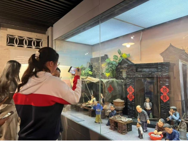 同学们三五成群,在年俗的红火场景前驻足凝视,在婚俗的礼仪器物间细细品读,在泥人张彩塑、杨柳青年画等非遗展品前轻声交流,眼神里满是对津门民俗文化历史的好奇与赞叹。大家认真聆听,用手机记录下老物件里的市井烟火,在互动体验中触摸海河之畔的民俗脉搏,感受天津地域文化的独特韵味。