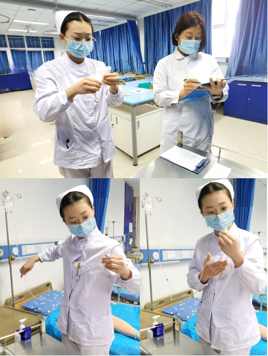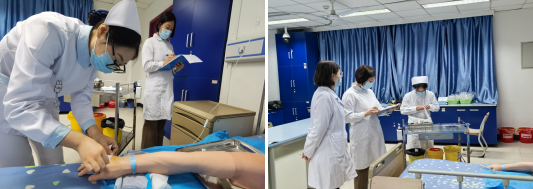 实操环节中,医院老师们对毕业生进行了静脉输液技术的考核。在技能操作中,同学们态度认真,着装规范,技术娴熟。同学们认真进行环境评估,用物准备,严格执行无菌技术,查对制度,耐心进行健康教育,同学们娴熟的操作和沉稳的表现,充分展示出我校毕业生的技术风采。
