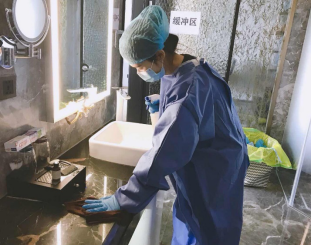 来自1811口腔护理班的闵天怡的主要工作是在隔离点位上送餐、测量体温、健康筛查、接收(中转)文件、消毒等任务。在这几天,她看到了岗位上的叔叔阿姨们,主动放弃春节休假,积极投入抗疫一线。危难关头,他们不讲条件、不计得失、全力以赴,用抗疫的实际行动来践行初心和使命。
