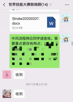 扎实理论知识。通过借鉴国际健康与照护相关技能标准及相关教材,依据世界技能大赛国赛的标准和要求,结合国内外技能技术特点,利用微信指导教师及时进行讲解,并与选手进行问题讨论交流,选手的理论知识得到了进一步夯实。