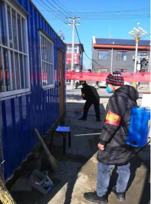 18182班的刘峰臣,家住蓟县出头岭镇何家堡村,疫情当前,他主动申请志愿者服务,负责登记和测体温,并负责车辆消毒和村内消毒。他在延寿村口,负责给出入村的居民测体温,以及每天2次全村消毒的工作。每天工作12小时的他,站在村口,面对风吹日晒、大雪纷飞,依然坚守岗位……