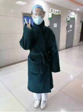 疫情当前,面对人流量比较大的医院里,防控工作尤为重要,作为志愿者,她的主要工作是在门诊楼门口给每一个进入的人员测量体温,做预检分诊。工作虽简单,但必须仔细认真,不能漏查任何一个人。她说:“第一次远离家人独自在外过年比较伤感,但我觉得很有意义。在工作中,收获了别人的关心、赞美和鼓励,志愿服务活动让我收获满满的感动与成长,更加坚定学医的信心。”