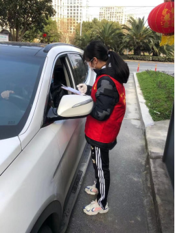 根据安排,陆奕来到了某社区辖区内的一小区开展志愿服务工作。根据社区防控需要,在小区入口处对进入小区的车辆进行排查:询问其从哪儿来、到哪里去,来小区的目的是什么,对车内人员进行体温测量并进行登记。对非本地居住的人口和外来车辆进行劝返,对不配合调查工作的人员进行劝说教育。同时,她要向居民们进行宣传,提示居民们减少外出次数。在志愿服务过程中,小区的保安大爷在得知她是一名医学生后连连称赞,他坚信在新时代青年人的勇敢奋斗下,我们的国家一定会越来越好,疫情一定会早日被控制住!