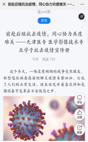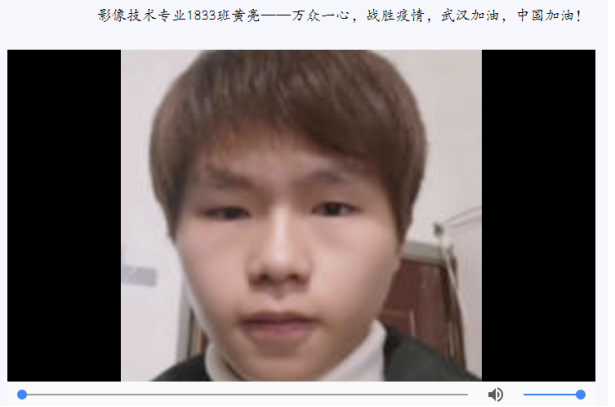 逆行的人群中,有那么多的熟悉面孔,有那么多的医专人奔赴一线,治病救人,呵护生命。医学影像技术专业教师任津瑶、辅导员葛超老师联合医学影像技术专业学生制作视频——“祝所有前线医护人员平安,抗击疫情成功”,“武汉加油,中国加油!”这是医者仁心,更是匠心传承;这是乐观团结,更是相信明天!武汉加油!中国加油!