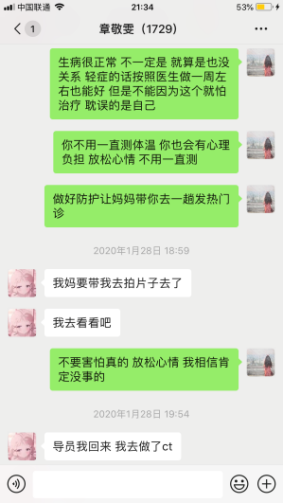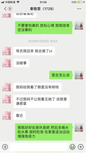 疫情无情,人有情,这是这个寒冷的冬天留存的温度。在过去的将近二十多天的时间里,辅导员每天不是在打电话,就是在发微信,要么就是在QQ群或者微信群里一遍又一遍的询问“某某某,你还咳嗽么?”“某某某,还发烧么?”“大家一定尽量少出门,不聚会,在没有学校的通知的情况下,不私自提前返校”,这就是2020年这个春节辅导员们的日常,逐个了解每一位学生的动向和身体状况成为了这些日子里辅导员老师们最为关注的事情。为了让更多的家长理解并配合我们的工作,辅导员老师们还写了致家长一封信,表达关心的同时及时让学生和家长了解疫情期间学校的相关安排。辅导员老师们还利用网络玩起了新花样,以宿舍为单位进行群视频,迅速了解每一个同学的身体情况和心理状况,及时关心,及时解答,及时疏导,为这个带有春节的假期丰富了情怀和问候。