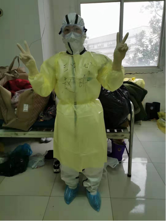 春节前,赵珊一直关注电视及网络上宣传的疯狂肆虐全国的新型冠状病毒肺炎疫情。“当时我就想,疫情就是命令,时间就是生命,2003年发生SARS疫情时,我还在上学,那些奋不顾身的医护人员深深感动了我,17年后作为一名已经在临床工作多年、经验丰富的呼吸内科护士,我责无旁贷”赵珊说,“接到报名通知那一刻,她主动向院里申请前往武汉一线支援,党和国家培养了我这么多年,现在正是国家和人民最需要我的时候!”就这样,姑爷节那天赵珊拜别父母家人远赴武汉救援一线。赵珊告诉记者,原本计划陪家人、培儿子过一次团圆年,这一次她又食言了。家人的理解让赵珊没有后顾之忧,一心扑在武汉救援一线。