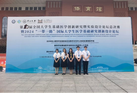 2024年8月22日~8月25日第十届全国大学生基础医学创新研究暨实验设计论坛总组决赛暨2024年“一带一路” 国际大学生医学基础创新实验设计论坛(以下简称“论坛”)在广州中山大学举办,我校共有4支队伍脱颖而出,获得国赛金奖二项,铜奖二项,获评最佳团队合作奖一项,取得历史最佳成绩。