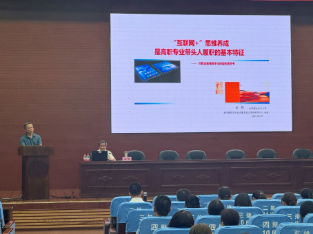 本次培训我校有幸邀请到金华职业技术学院原党委副书记胡野教授作《建立“互联网+”思维是高职专业带头人履职的基本特征》专题授课,胡教授从三教改革的“互联网+”思维、专业建设须迈过的“四道坎”、能力提升应强化的“四个招”三个方面对职业教育数字化转型进行再思考,他指出教育数字化不仅是借助互联网与数字技术,更重要的要养成“互联网+”思维,对于当下深化三教改革,其是提升职教教师教育教学能力的关键一环。