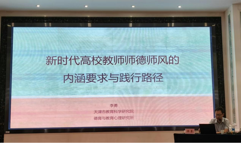 天津市教育科学研究院德育与教育心理研究所李勇所长以《新时代高校教师师德师风的内涵要求与践行路径》为题,全面解读师德师风,涵盖政策、案例及心理思政提升路径,促进教师师德涵养提升。医学护理学院苑晶晶副教授以《扬工匠精神展技能风采》为题,分享技能比赛辅导及参赛感悟,参赛导师要慧眼识才,因材施教;选手需勤学苦练,创新求精。教师工作部副部长王文洁教授,以《药物检测类课程线上线下混合式教学设计与实践》为题,介绍课程建设历程、线上线下混合式教学模式改革实践,分享教学模式改革中的经验收获及反思。