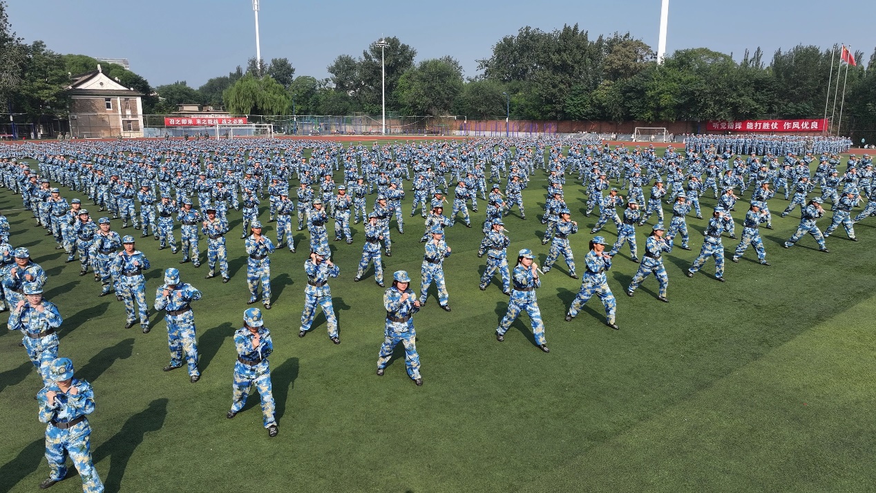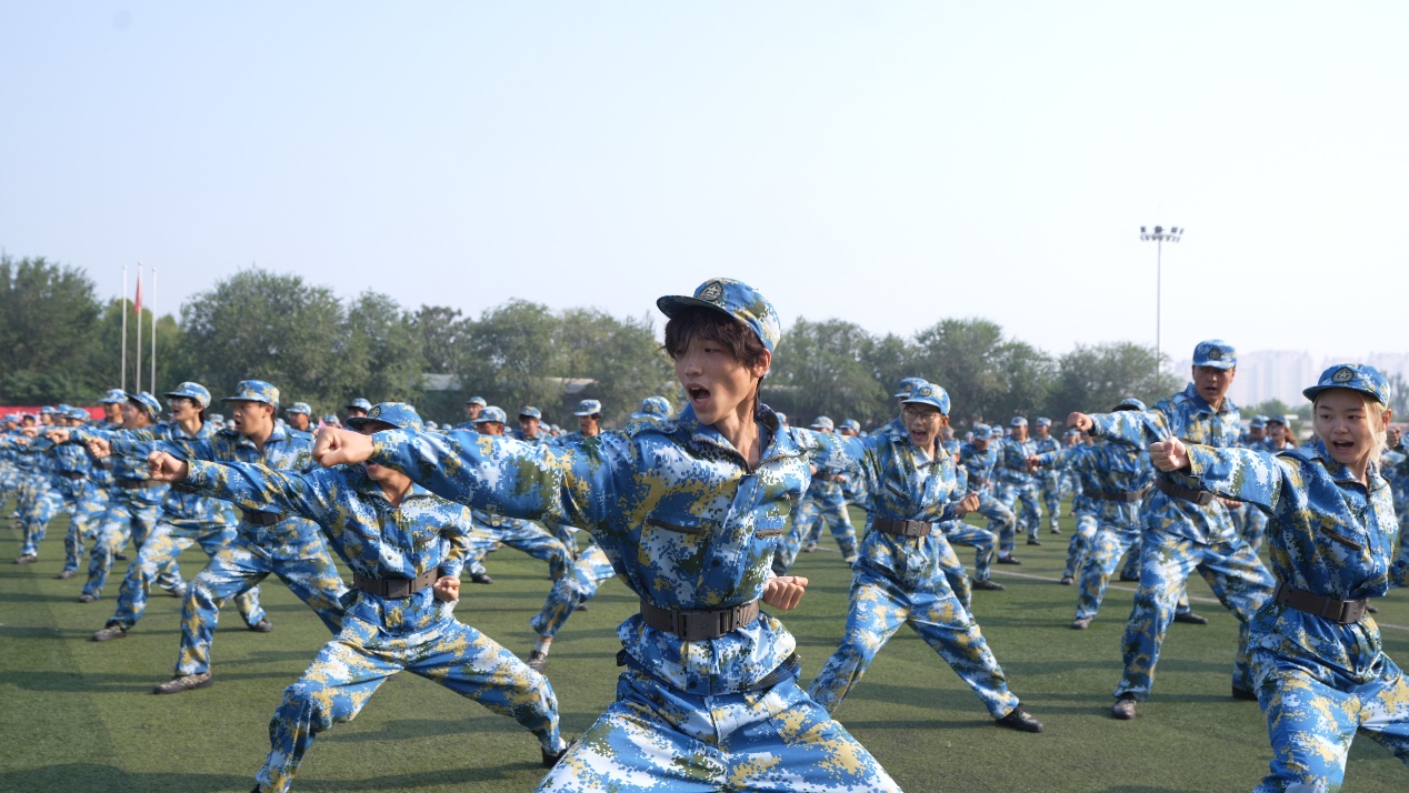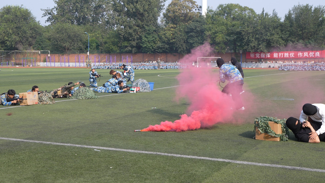 在军训成果汇报中,同学们展示了军体拳、海军旗语、匕首操、擒敌拳、综合战术演习等项目,大家动作干脆利落、口号铿锵有力、队列整齐划一,充分展现了此次军训的丰硕成果,赢得了现场阵阵掌声。