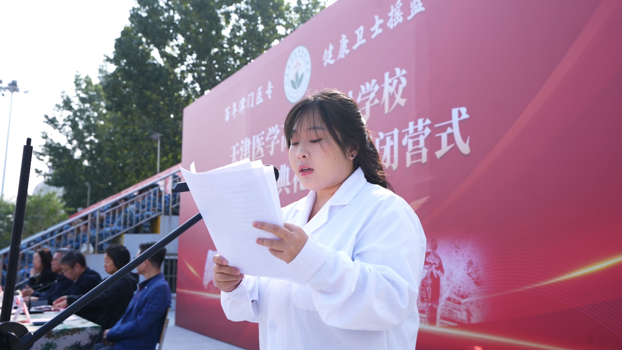 新生代表、护理25268班赵蕾然同学发言,她表达了成为“医专人”的荣耀与喜悦,展现了对未来学习生活的期望与信心。
