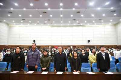 大会在庄严的奏唱国歌中拉开帷幕,党委学工部部长、团委书记张鑫宣读了2022-2023学年校级先进集体、优秀个人和“十佳大学生”的表彰决定。