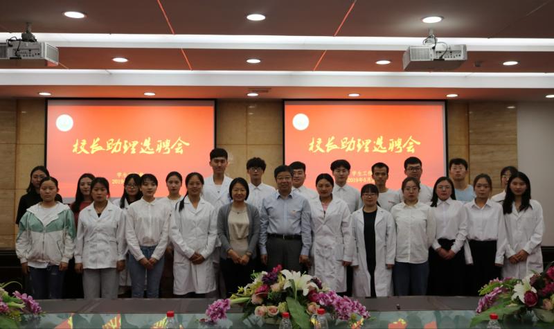 2019年5月22日我校在第五会议室召开学生校长助理选聘会,校领导张彦文校长和纪检委左红书记应邀参加,相关职能处室负责人、各学工党总支书记、学工负责老师及学生代表一同参加。