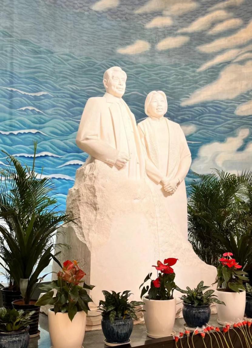 在展厅前,师生们共同瞻仰了周恩来、邓颖超两位革命先辈的雕塑。两位伟人面带微笑,目光坚定地注视着前方,仿佛在激励着每一位参观者。师生们纷纷献上鲜花,表达对总理的深切怀念,并一同回顾了革命先辈们的奋斗历程和光辉岁月。这些雕塑不仅是历史的见证,更是精神的传承,激励着一代又一代的青年学子。