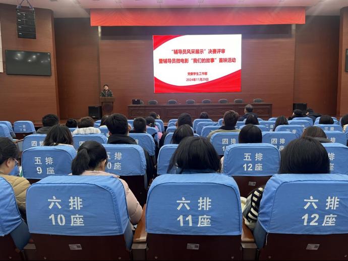 为进一步展现辅导员队伍的工作状态和精神风貌,加强辅导员开展思想政治教育工作的成效宣传,我校于10月至11月组织开展辅导员风采展示大赛,决赛评审于11月29日上午在学术报告厅举行。校党委副书记、副校长左红,党委学生工作部部长、工会主席张鑫,校团委副书记高琳璐,各学工支部书记熊湘萍、商其杰、陈浩作为评委出席,提交参赛作品的辅导员老师们到场观摩。