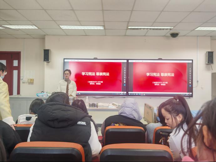 为迎接12月4日“国家宪法日”,口腔系结合专业特色,将宪法宣传融入志愿服务与社会实践中。各班级通过主题团日、知识竞赛、宪法晨读等形式,普及宪法知识,弘扬宪法精神。部分班级还组织学生走进社区,开展口腔健康义诊与宪法宣传相结合的活动,既服务群众,又传播法治理念,营造了尊崇宪法、学习宪法、遵守宪法的良好氛围。