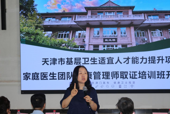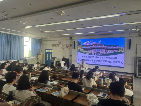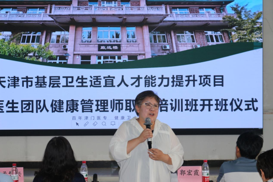 2024年5月31日,天津医学高等专科学校卫生健康管理学院举办了2024年天津市基层卫生适宜人才能力提升项目家医团队健康管理师取证培训开班仪式。此次培训从5月31开始,到6月16日结束,一共分为两期。来自天津市16个区的139名基层医疗机构的第一期家医团队人员参与了此次开班。开班仪式由本项目负责人郭宏霞老师主持,出席开班仪式的有继续教育学院刘冬莹院长,卫生健康管理学院兰晓霞副院长、教学办公室孟繁兴主任及教研室所有老师。
