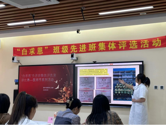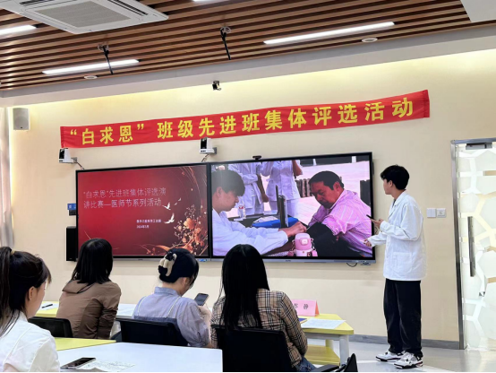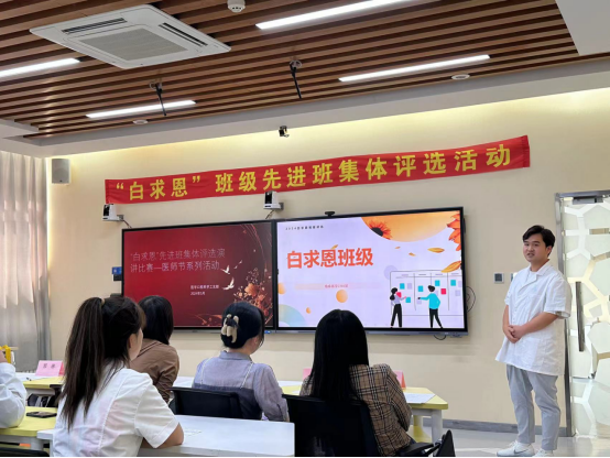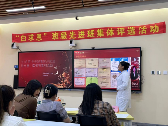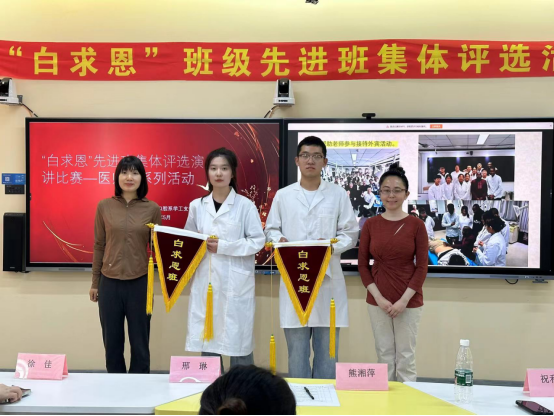 为深入践行白求恩精神,进一步激发医学生的职业追求,全面提升医学生的综合素养,医学口腔系学工支部于2024年5月底在教师发展中心成功举办了“白求恩班级评选活动”。此次活动不仅是对医学生全面发展的一次集中检阅,更是对白求恩精神内涵的一次深刻诠释。本次活动由医学口腔学工支部书记熊湘萍和医学口腔各专业辅导员担任评委,参加白求恩班级评选的部分班级同学观摩了比赛。