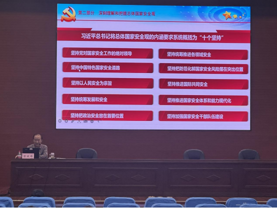 陈振锋书记在报告中从正确认识国家安全及国家安全形势、深刻理解和把握总体国家安全观、深入领会构建新安全格局的实践要求三个方面内容,结合现实案例,深入浅出的讲述了国家安全的重要含义、新时代我国国家安全面临的新外延和新形势。