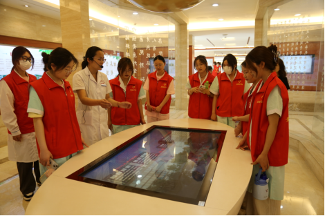 在参观学习之后,由许英老师组织同学们到门诊大厅及病房开展志愿服务,并组织同学们讨论分享实践感悟。