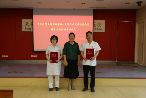 接下来,由马克思主义学院杜美婷院长为武清区中医医院德育导师宋光明副院长和周岚老师颁发德育导师聘书。武清区中医医院作为我校的实习基地,与我校有着长期的合作关系,双方共同致力于教育教学、社会服务、人才培养的提升,本次特聘医院领导、老师为我校思政德育导师,力图将职业道德和医学精神更好地融入思政课建设中,丰富学校“大思政课”体系,进一步落实立德树人根本任务。