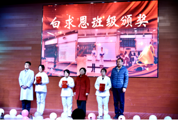 天津医学高等专科学校党委副书记、副校长左红致辞。左书记首先向广大医务工作者致以节日的问候、崇高的敬意和衷心的感谢。左书记强调,习近平总书记在党的二十大报告中对推进中国建设作出全面部署,强调人民健康是民族昌盛和国家强盛的重要标志,把保障人民健康放在优先发展的战略位置。“一代人有一代人的长征,一代人有一代人的担当”,左书记希望医专学子要牢记习近平总书记把人民群众生命安全和身体健康放在第一位的嘱托,弘扬“敬佑生命、救死扶伤、甘于奉献、大爱无疆”的精神,为祖国卫生健康事业的发展贡献出无限青春力量。