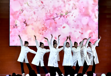 开场视频回顾了本次医师文化节的精彩片段,同时拉开了医师文化节报告会的序幕:医学生知识竞赛、白求恩班级评选、特色晨读、医学生志愿服务短视频征集、“细雨‘医’门有杏花 ”诗歌大赛等系列活动,充分展现了我校新青年准医者的风采。校艺术团带来的舞蹈《春暖花开》温柔且坚定,激励医学生们在未来的学习工作中砥砺前行,为建设健康中国、增进人民健康福祉作出更大贡献。