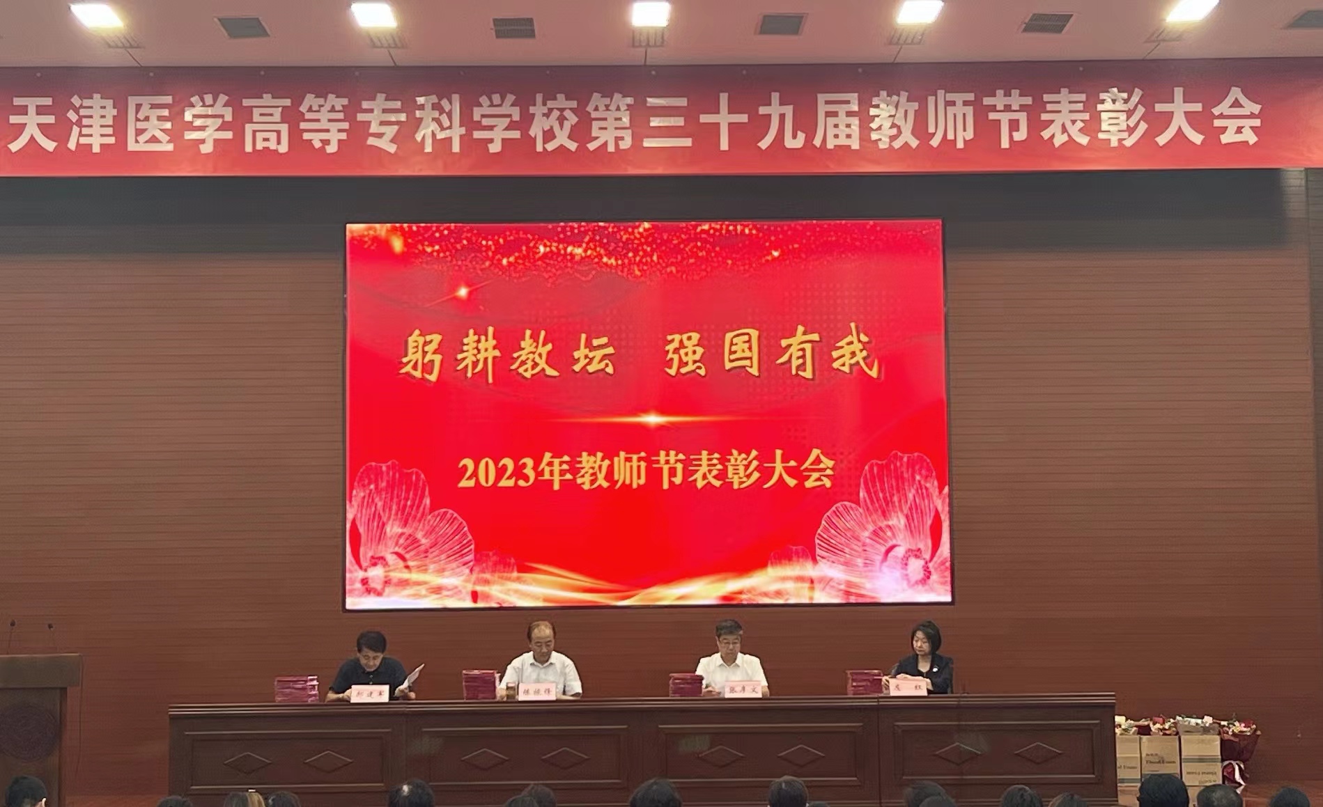 金秋九月,丹桂飘香。随着新学期的开始,我们迎来了第三十九个教师节。9月12日下午2:00我校在学术报告厅举办天津医学高等专科学校第三十九届教师节表彰大会,学校党委书记陈振锋,校长张彦文,副校长郝建军,党委副书记、副校长左红,东丽医院副院长彭亮出席大会。大会由党委副书记、副校长左红主持,全校教职员工、各教学实习基地嘉宾以及学生代表共三百余人参会。