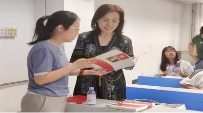 闵老师把自己从业以后的经验毫无保留的传授给同学们,她将内职业和外职业生动形象的用一棵苹果树来比喻,内职业是自己的本领,它是别人无法掠夺的财富,并且和同学们积极互动,带动现场的气氛,积极回答问题的同学还可获得赠书《无涯》,在《无涯》中,她把自己的人生经历定义为“快乐人生哲学”。
