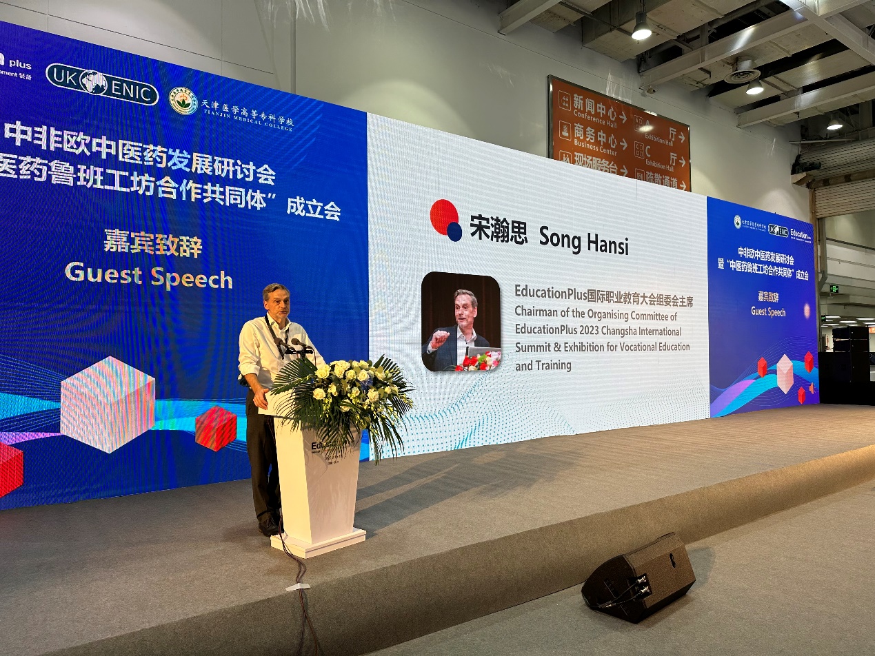 许院长首先表达了对各位参会人员的欢迎,并介绍了此次会议的积极意义及主要参会嘉宾。随后,由Education Plus国际职业教育大会组委会主席宋瀚思、天津医学高等专科学校校长张彦文、英国国家学历学位评估认证中心中方理事会秘书长焦满生进行了开场致词,强调了打造中医药鲁班工坊,成立合作共同体,推动中医药走出国门的重要性,并预祝本次成立大会圆满成功。
